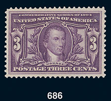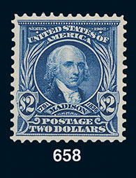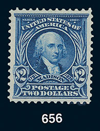 625 ** 302 VF NH, well centered, extremely fresh, (Scott $140)............................................................................................. $85