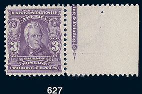 627 ** 302 VF-XF NH with side imprint, no gum bends or skips (Scott $140 VF, $200 VF-XF) w/2019 PSE ..... .. . $150