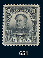 650 * 311 F-VF LH, decently centered, very fresh, (Scott $575 for VF, $400 for F-VF)................................................ $225