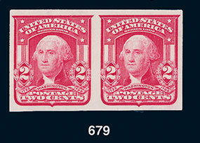 679 ** 320c SUPERB NH Pair, large margins, “carmine-rose,” taken from a block of four, this being