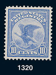 1318 ** F1 VF NH, three large even margins no gum bends or skips (Scott $160 VF, $210 VF-XF).................................... $85