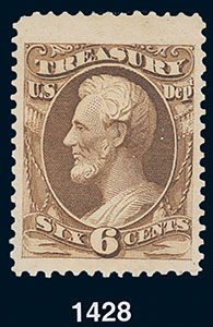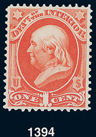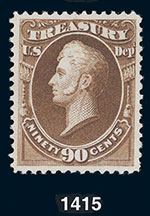1415 * O82 XF, unused, no gum, large margins, (Scott $225 VF, $300 for XF) w/2010 Weiss Certificate................. $199