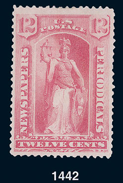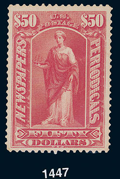 1447 * PR112 VF LH, previously hinged, radiant color! (Scott $2750) w/1986 PF Certificate ............. Enlarged Photo $1695