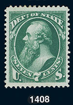 1408 * O61 VF-XF OG, previously hinged, deep color with very large margins, (Scott $400 for VF-XF) 2025 PSAG $299