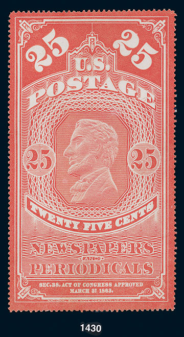 1430 * PR3 VF-XF, unused, no gum as issue, bright and fresh (Scott $400) w/2025 PSAG Certificate ................. $395